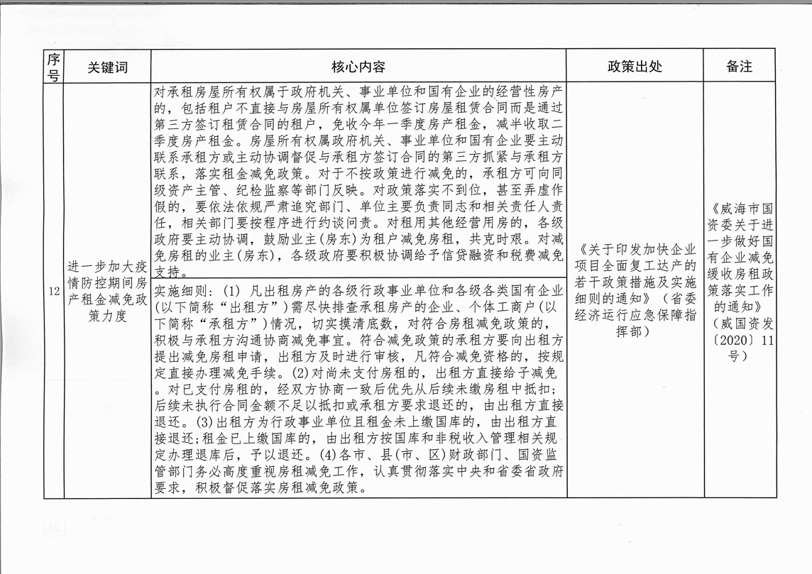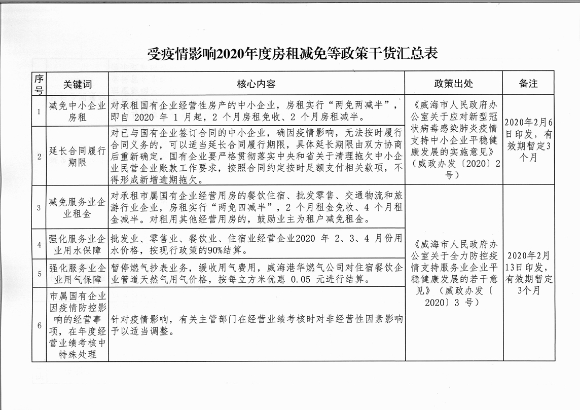 為全面落實(shí)“六穩(wěn)”、“六保”任務(wù),進(jìn)一步推動(dòng)國(guó)有企業(yè)房租減免政策落地落實(shí),現(xiàn)將《受疫情影響2020年度房租減免等政策干貨匯總表》及監(jiān)督投訴電話予以公告。