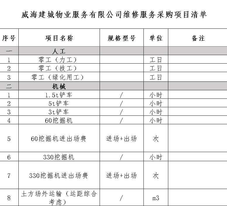 威海建城物業服務有限公司維修服務采購項目