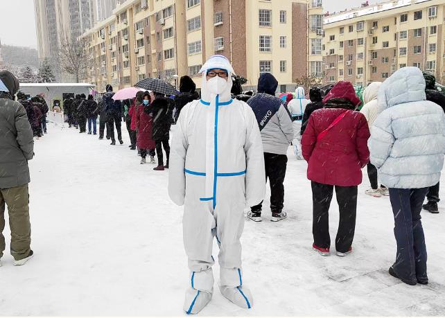 漫天風雪,氣溫低至零下,依然擋不住廣大志愿者抗疫的腳步。11月30日以來,集團黨員干部職工全力以赴投身在抗疫第一線,在抗疫戰(zhàn)場上“連軸轉”。有的干部職工雖然不是黨員,卻在關鍵時刻沖鋒陷陣,第一時間到社區(qū)報到,支援抗疫工作。有的黨員從12月1日晚上8點就開始在社區(qū)卡口執(zhí)勤,一直干到次日凌晨1點,寒風刺骨卻無怨無悔。有的黨員老公在單位值守,自己一個人在家照顧孩子,為了支援社區(qū)疫情防控,早上5點就把孩子叫醒讓對門鄰居幫忙照看,義