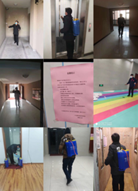 作為集團防疫防控工作最前線的物業公司,始終以為保障業主的生命安全和身體健康為己任,全體職工輪流值崗,發揚連續作戰,不怕疲勞的精神,對服務的城建華庭、城建蘭庭、半城印象三個項目物業的公共區域、公共設施進行全面防疫消毒。對園區重點部位消毒,每天不少于2次,增加對樓道、電梯轎廂、單元門、樓宇對講、地庫等公共區域消毒頻次,以及對垃圾桶、門把手、信報箱等業主常接觸的設施設備的消毒頻次,嚴把每一處細節。在各個小區主要出入口設置關卡,外來車輛禁止入內,人員進出登記信息,加強對外來人員(有異常癥狀業戶)監測。同時積極開展疫情防控宣傳工作,第一時間發布最新新型冠狀病毒防范信息,通過條幅、管家微信朋友圈、公告欄通知等線上線下及時向業主宣傳防疫方法,做好新型冠狀病毒防護的溫馨提示,引導業主和員工共同參與到疫情防控戰中。在防疫物資異常緊缺的情況下,建城物業公司通過多方協調,籌集到消毒液,在各小區內設置消毒液免費領取點,得到了業主廣泛肯定。
