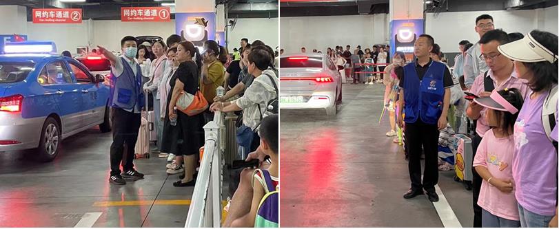 “請您到這邊排隊上車”“行李我?guī)湍帷薄罢埿⌒纳砗筌囕v”,活動當天,地下車庫高溫悶熱,城建集團“WE先鋒”黨員志愿者們汗流浹背,衣服全部濕透,但大家無怨無悔,不畏高溫酷暑,堅持奮戰(zhàn)在客運一線,他們始終面帶笑容,不畏辛苦勞累,認真履職,贏得了過往乘客的一致好評。