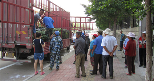 清晨6點職工已到達綠化工地現場, 準備卸苗木
